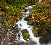 Detail van een waterval bij Glencoe in de Schotse hooglanden, Schotland. Deze kleine waterval is er alleen bij veel regenval. Op de oevers van de waterval staan varens.