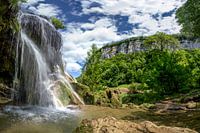 Tufsteenwaterval bij het dorp Baume-les-Messieurs in het Juragebergte in de regio Bourgogne Franche Comté in Frankrijk.