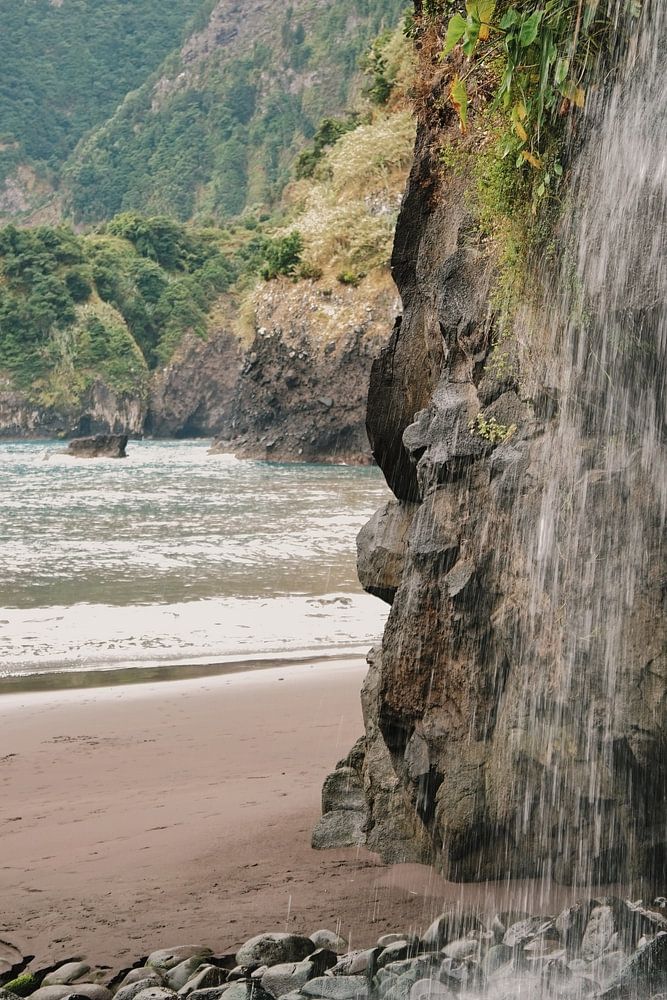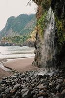 De foto is genomen op het strand van Seixal Beach, waarop een waterval naar beneden stroomt! Wat bijzonder.