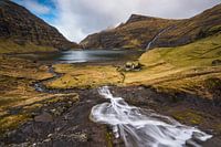 Waterval over de baai van Saksun, Streymoy, Faeröer, Denemarken