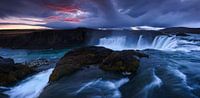 Stormachtige zonsopgang bij de Godafoss, ook wel waterval van de goden genoemd!