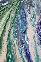 Abstract schilderij met waterval van vloeiende kleuren die samen een energiek en dynamisch beeld vormen.