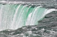 Een closere foto van het water op het moment dat het zich naar beneden stort in een van de Niagara watervallen, op de grens van Canada en de VS.
