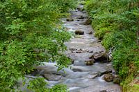 Waterval in Oostenrijk nabij Imst. Mooie serene foto en gecreëerd door middel van lange sluitertijd.
