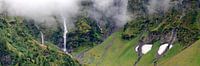 Einde van het dal met watervallen en restsneeuw in het Felbertal in de kernzone van het National Park "Hohe Tauern" in Salzburg, Oostenrijk