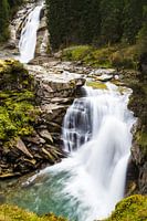 De middelste watervallen van de bekende Watervallen van Krimml, de Krimmler Wasserfälle. Door een langere belichtingstijd krijgt het stromend water een wat zachter karakter. Desondanks is de kracht van het water duidelijk te zien.