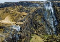 Een foto van diverse watervallen op een rij in IJsland