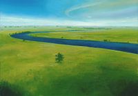 Het schilderij toont een schilderachtig Boddenlandschap aan de Baltische Zee. Het legt de unieke schoonheid en het belang van deze regio vast. De Bodden, ondiepe zeebaaien en lagunes, spelen een cruciale rol in de biodiversiteit en het evenwicht van mariene ecosystemen.
