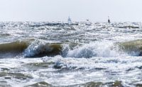 Strand, wind, zee, golven..... een meeuw... een boei... en een fregat wat de haven verlaat... alles in 1 plaatje...