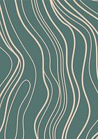 Waves: lichtroze lijnen tegen een blauw/groene achtergrond. Abstracte, minimalistische print. Modern.