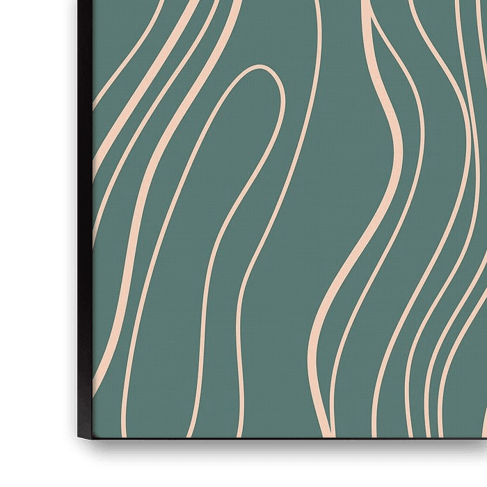 Waves: lichtroze lijnen tegen een blauw/groene achtergrond. Abstracte, minimalistische print. Modern.