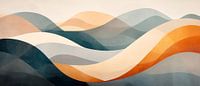 Zachte golfvormen in harmonieuze beige, blauwe en oranje tinten geven dit kunstwerk een rustgevende elegantie. De vloeiende lijnen geven een gevoel van beweging en vrijheid, ideaal om rust en inspiratie te creëren in een woonkamer. Deze compositie nodigt uit om steeds opnieuw te dromen en past perfect bij moderne inrichtingsstijlen.