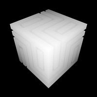 A rendering of a cube of wax with an ornament.