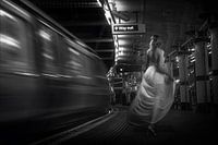 Hang deze fine art foto in uw interieur en laat de dromerige en urban sfeer tot leven komen. Laat u inspireren door het contrast tussen de elegante vrouw en de dynamische omgeving. Het is een beeld dat zowel tijdloos als eigentijds is, en een vleugje mysterie toevoegt aan elke ruimte.