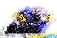 Schilderijen van een serie legendarische motoren en hun onverschrokken rijders. Geschilderd met aquarellen op papier.