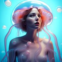 Dit intrigerende kunstwerk, getiteld "We Are All One," vangt een moment van diepgaande eenheid en samensmelting tussen de mens en de oceaan. In het centrum van deze visuele harmonie staat een vrouw wiens wezen lijkt te versmelten met de schoonheid van de zee. Haar gestalte en de oceaan lijken één te worden, als een ontroerende…