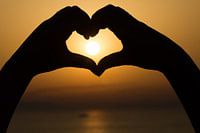 Hart van handen, love met een zonsondergang. Hoe romantisch wil je het hebben!