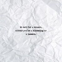 Een mooie, motiverende en inspirerende quote; We met for a reason, either you're a blessing or a lesson.