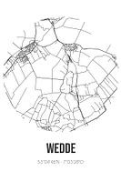 Zwart-witte landkaart, stratenplan of plattegrond van Wedde. Wedde is gelegen in de gemeente Westerwolde, provincie Groningen. Op de stadskaart zijn alle openbare wegen in Wedde opgenomen. Verder is de kaart voorzien van de coördinaten van het centrum van Wedde.