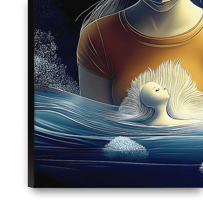 Dompel jezelf onder in "Rebirth in the River", een betoverend digitaal kunstwerk dat de harmonie tussen zelfreflectie, natuur en transformatie vastlegt. Dit sfeervolle werk toont een serene figuur die naar beneden staart alsof hij kijkt naar de opkomst van een goddelijk wezen uit een etherische rivier. Het stromende water, het…