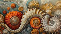 Fractal art die lijkt op delicate weekdieren en schelpen. De neutrale kleuren en sierlijke stroom van de fractals creëren een vredige en serene harmonieuze stemming. Ontspan en mediteer, geniet van de schoonheid van kunst in wiskunde - het ontwerp van alles in onze wereld.