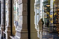 Een mooie compositie met vele facetten in zich, zoals licht en donker, werkelijkheid en spiegeling, etc. Deze foto schoot in in de Passage in Den Haag door de ruit van de daar gevestigde winkel van Nespresso.