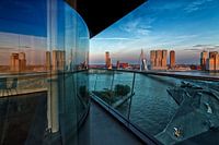 Weerspiegeling van de skyline van Rotterdam op het dak van Hotel Inntel Rotterdam.