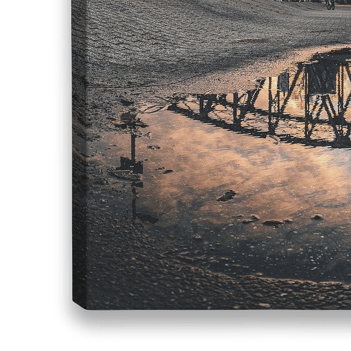Koop de Rotterdam foto Weerspiegeling van de Hefbrug in Rotterdam in een plas water van Arthur Scheltes op canvas, aluminium dibond, (ingelijste) fotoprint, behang en ArtFrame, op maat geprint in Fine-Art kwaliteit.