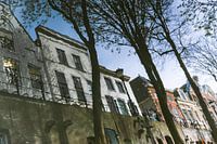 Weerspiegeling van grachtenpanden in het water van de Oudegracht in Utrecht. One2expose Wout Kok Photography. Een op een aquarel gelijkende foto van de reflectie van de stad Utrecht in het water.