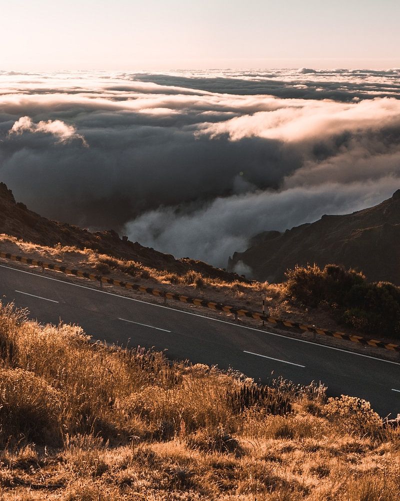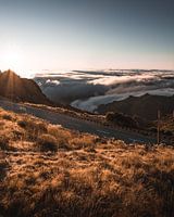 Zonsopgang boven de wolken op Medeira met uitzicht op de bergpas.
