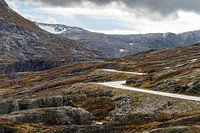 De weg door het prachtige landschap van Noorwegen. De herfst is al ingetreden en dat betekent prachtige kleuren van de verkleurende vegetatie.