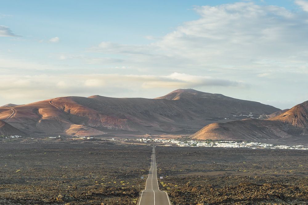 Een deel van de LZ-67 loopt kaarsrecht door het westen van Lanzarote en ziet eruit als een eindeloze lijn die onvermijdelijk het oog in de verte trekt. Donkere lavavelden strekken zich uit naar links en rechts, hun ruwe oppervlak kenmerkt het dorre landschap en zorgt ervoor dat de weg een duidelijke snede door de vulkanische vlakte…