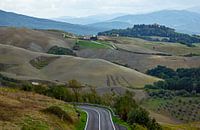 Italië staat bekend om de pizza, pasta, prachtige landschappen en mooie steden. Net name in Toscane vind je daarnaast een prachtig heuvellandschap. Vanuit de weg heb je een prachtig uitzicht over het landschap van Toscane. Een must have voor iedere liefhebber van Italië. Leuk als schilderij of als behang voor aan de muur.