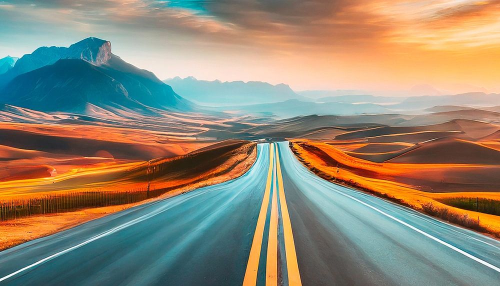 Weg met bergen en bos in het landschap