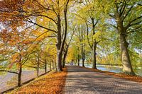 Weg met beuken langs kanaal in herfst van Ben Schonewille