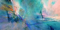 Een abstract schilderij met levendige structuren in delicate pastelkleuren. De intense lijnen doen denken aan een grote vogel in de vlucht. Er is veel ruimte voor uw eigen verbeelding.