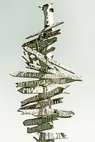 Een wegwijzer geeft de afstanden tot de bestemmingen aan. Dit creëert een vakantiesfeer!
