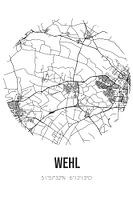 Zwart-witte landkaart, stratenplan of plattegrond van Wehl. Wehl is gelegen in de Achterhoek, in de gemeente Doetinchem, provincie Gelderland. Op de stadskaart zijn alle openbare wegen in Wehl opgenomen. Verder is de kaart voorzien van de coördinaten van het centrum van Wehl.