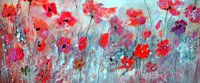 Een kleurrijke bloemenfoto met klaprozen voor in de woonkamer. Het straalt optimisme en vrolijkheid uit. De schoonheid van de natuur is altijd een onuitputtelijke bron van inspiratie. Bloemenfantasieën worden kunstig geënsceneerd...bloemen, bloesems, bladeren
