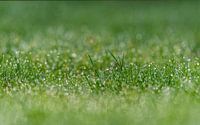 Weide met bokeh en dauwclose-up. De vroege ochtendvochtigheid zorgt voor dauwdruppels.