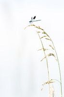 Deze Weidebeekjuffer zat mooi hoog op een grashalm. Vanaf een hoger standpunt kunnen ze kleinere insecten vangen boven het water. hier gebruiken ze vaak een gras aar of een rietblad voor. Weidebeekjuffers mannetjes hebben prachtige vleugels met een donkere vlek erop.