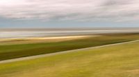 ICM foto op de dijk van Campen in Duitsland en uitzicht over de Eems. ICM Intentional Camera Movement is een techniek waarin de camera beweegt tijdens de belichtingstijden. Bewegende wolken bovende Waddenzee.