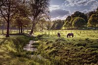 Weiland met paarden rond Kasteelboerderij Terborg in Schinnen (Limburg, Nederland).