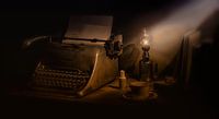 Oude spullen, typemachine uit de jaren 60, het lampje is van eind 1800.