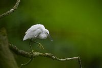 Vanuit mijn schuilplekje had ik mooi zicht op deze witte reiger, die behoedzaam over deze tak liep. Zoals ik hem niet wilde verstoren zo wilde hij zijn prooi niet verstoren zo leek het.