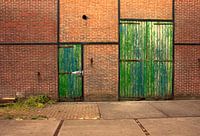 Twee deuren van een oude fabriek.