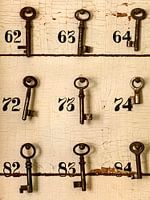 Antieke sleutels in de lobby van een oud hotel
