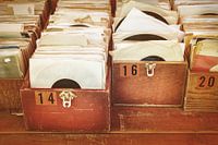 Tweedehands platenspeler elpee's op een antiekmarkt