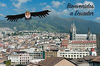 The national bird of Ecuador, the Condor (Vultur gryphus), flies over Quito and bids you welcome.