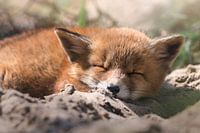 Koop de foto Welpje slaapt in het zand van Jolanda Aalbers op canvas, aluminium dibond, (ingelijste) fotoprint, behang en ArtFrame, op maat geprint in Fine-Art kwaliteit.